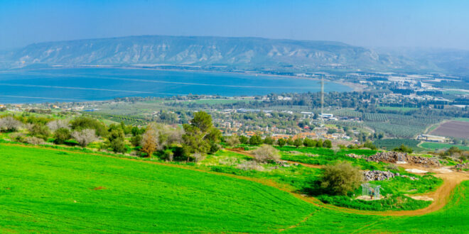 The Sea of Galilee (also called the Sea of Kinnereth, Lake of Gennesaret, and the Sea of Tiberias), located in the hills of North Israel, is nearly 700 feet below sea level. At its widest point, it is eight miles, and its length about 12 miles from north to south. It plunges to depths of 200 feet in places. It is surrounded by the hills of Galilee rising to nearly 1400 feet above sea level and the mountains of Golan Heights on the east, which range up to heights of 2500 feet. On the west of the sea is Mount Arbel. The slopes of the Golan Heights and Mount Arbel both drop sharply down to the sea. Because of the sea’s location and topography, it is subject to sudden, furious storms.